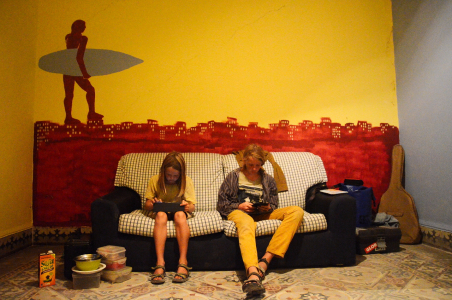 To ale předbíhám. Nejdříve jsme se museli zabydlet. Dostali jsme dva pokojíky ve druhém patře, a tak jsme čistili a opravovali, malovali, sháněli nábytek. Naštěstí ve velkém městě všechno, co potřebujete, najdete na ulici. Ve volných chvílích jsme si občas odskočili na střechu zkontrolovat vlny. Když se zdály být trochu mírumilovné, popadli jsme prkno a hurá k vodě. A pak už zase uklízíme a malujeme, a taky plánujeme otvíračku Kazaverdy pro veřejnost. Pomáhá nám spousta dobrovolníků z dalších squatů a i sousedi už si pomalu zvykají a později se k slavnosti otevření přidávají. Probíhají umělecké i relaxační workshopy, žongluje se, hraje a zpívá. Někdo dělá salát, my pečeme žemlovku, po chodbách běhají děti a naši kluci učí Edieho říkat „roztrhni si kušnu hákem‟.